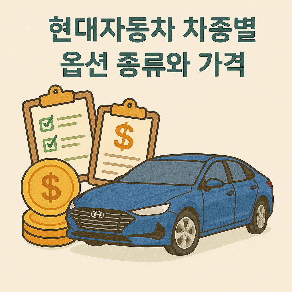 오늘은 현대자동차 주요 차종의 옵션 종류와 가격(2025년 8월 기준)을 정리해드리겠습니다.