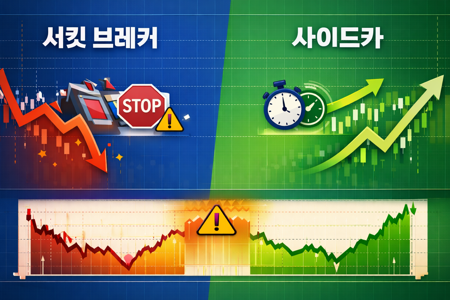쉽게 말해, 사이드카는 1차 경고, 서킷브레이커는 최후의 비상 브레이크라고 보시면 됩니다.