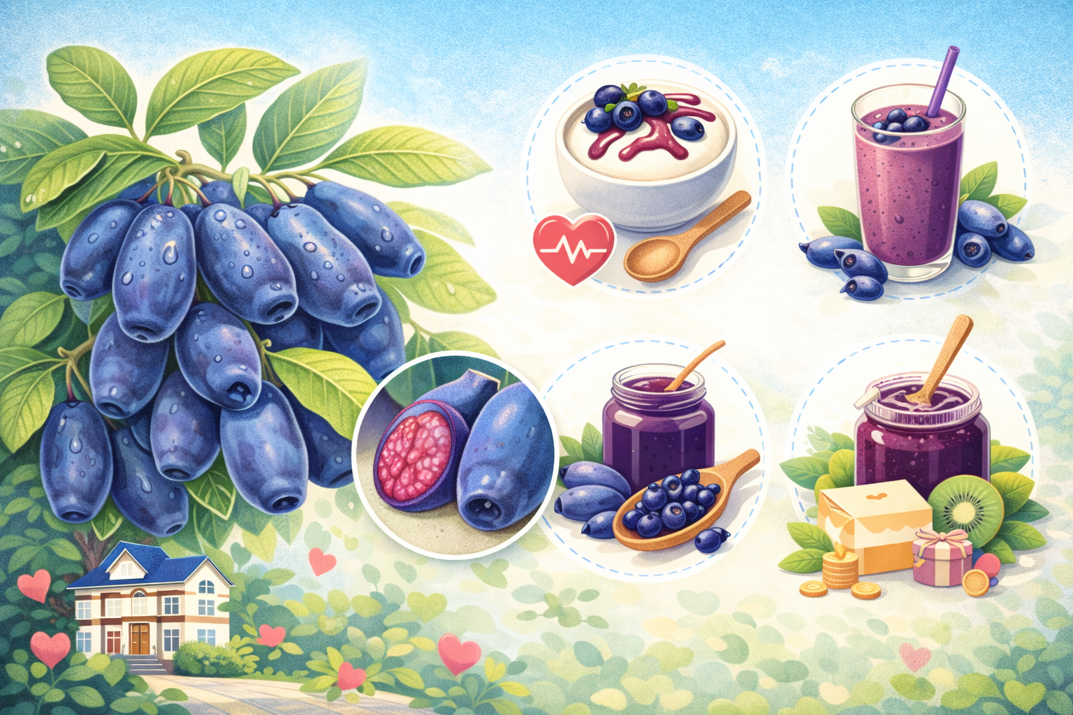 잼·베이킹: 빵에 발라 먹거나, 머핀·파이 재료의 10%를 하스카프베리로 대체하면 풍미가 좋아져요.